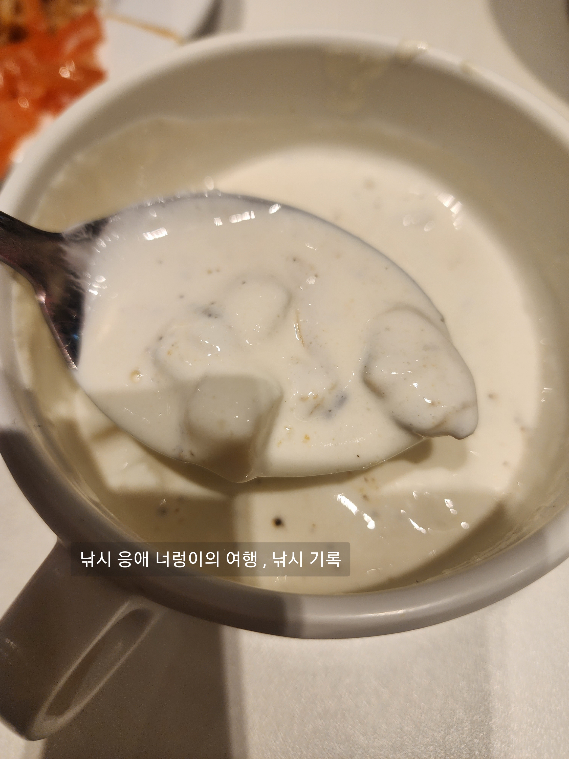 여긴 느끼해서 질리는 경우 아니면 계속 먹을수 있을 정도로 엄청 꾸덕하고 엄청 찐하고 엄청 건더기도 많은 정도의 스프가 있어서