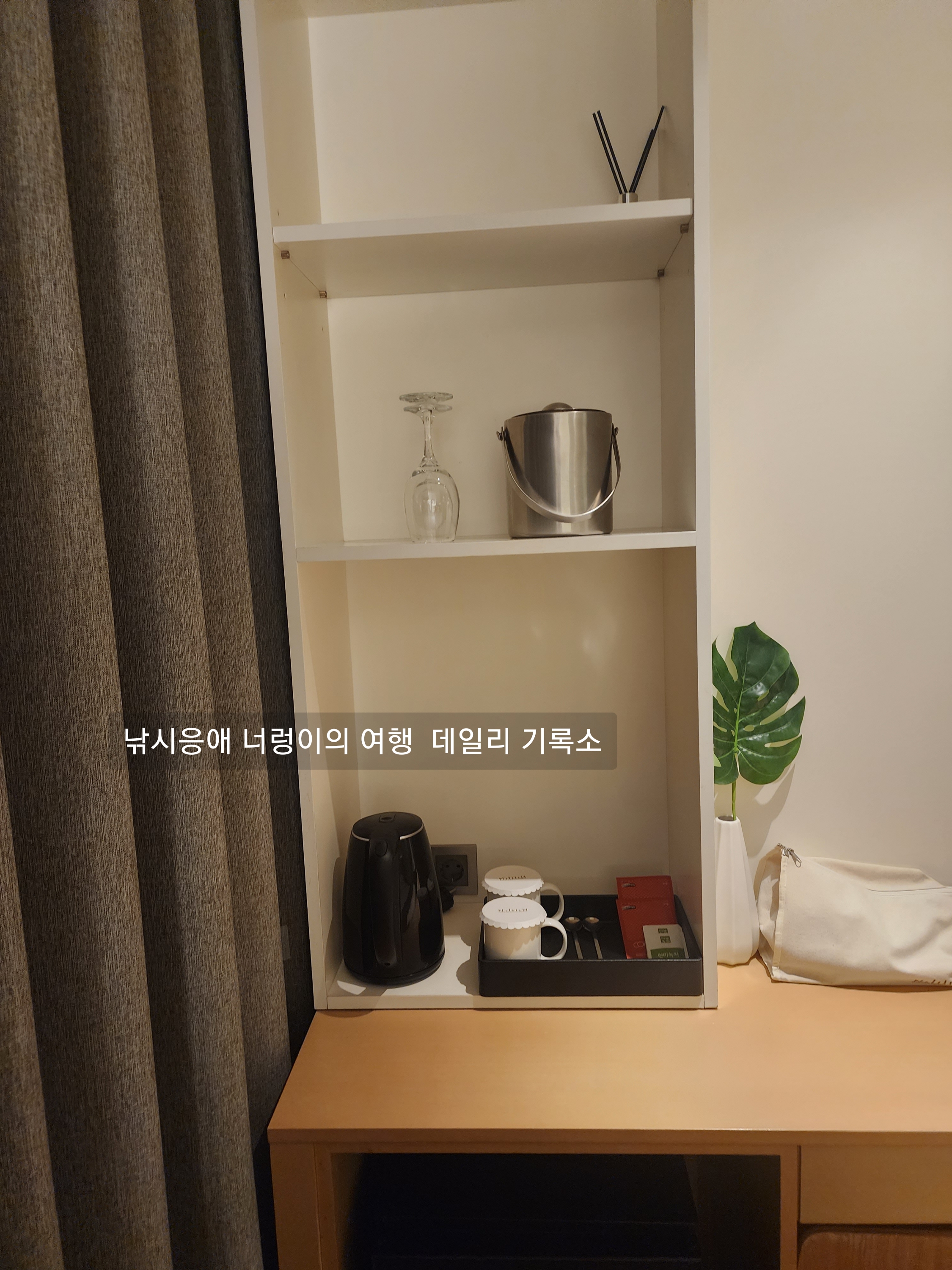 전기포트 일회용티 커피 그리고 아이스 버킷 준비되어 있습니다!